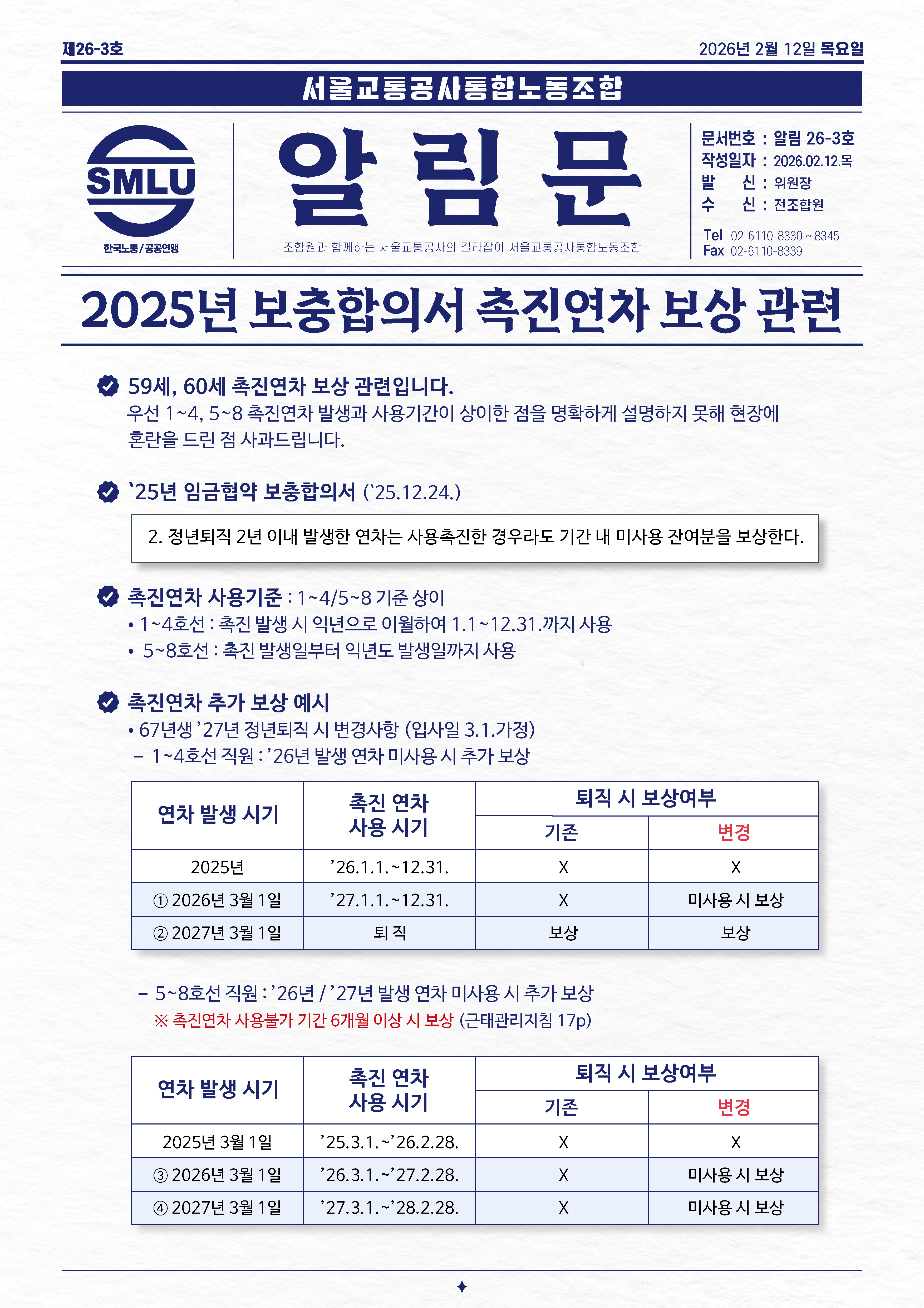 [알림문] 2025년 보충합의서 촉진연차 보상 관련