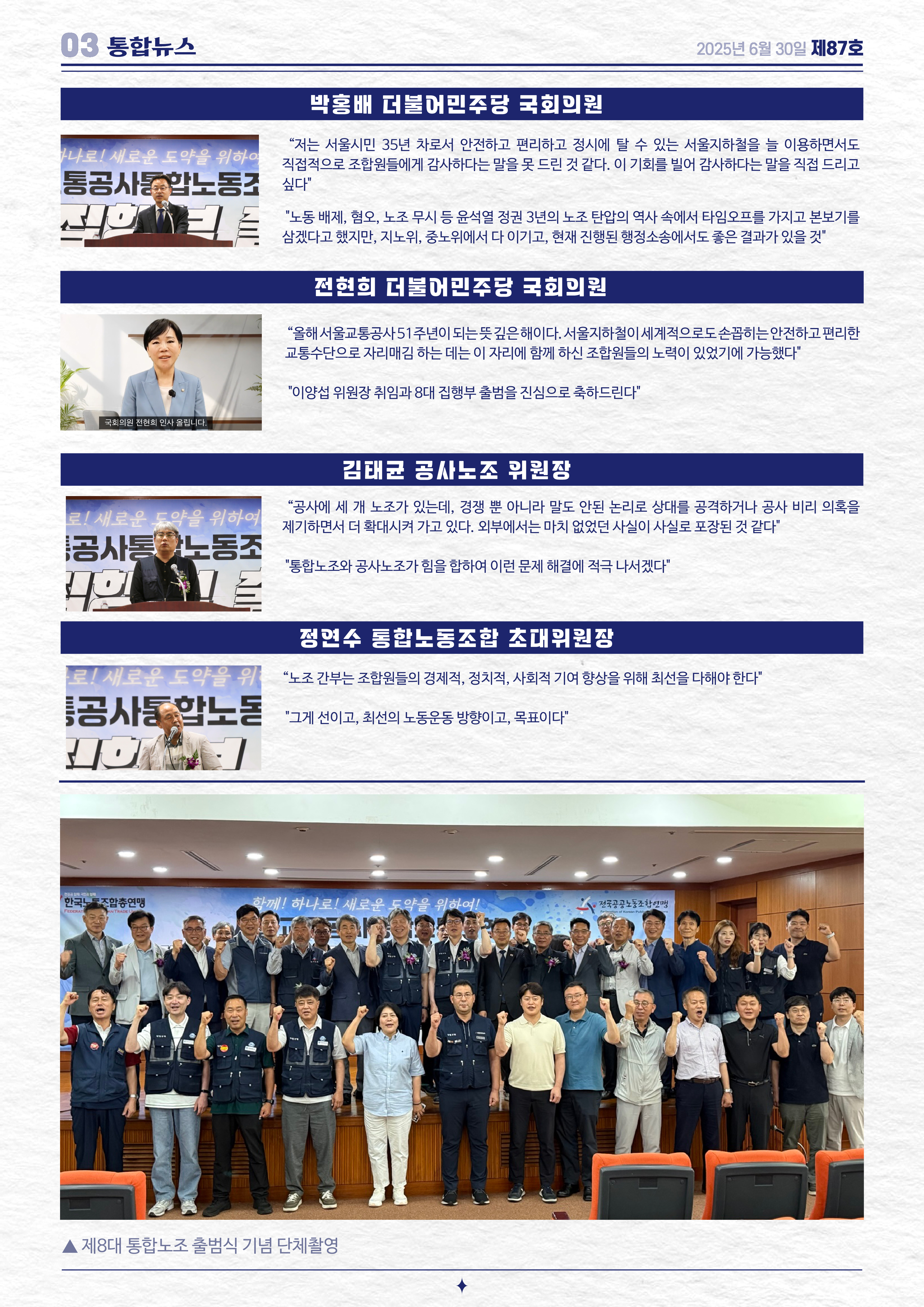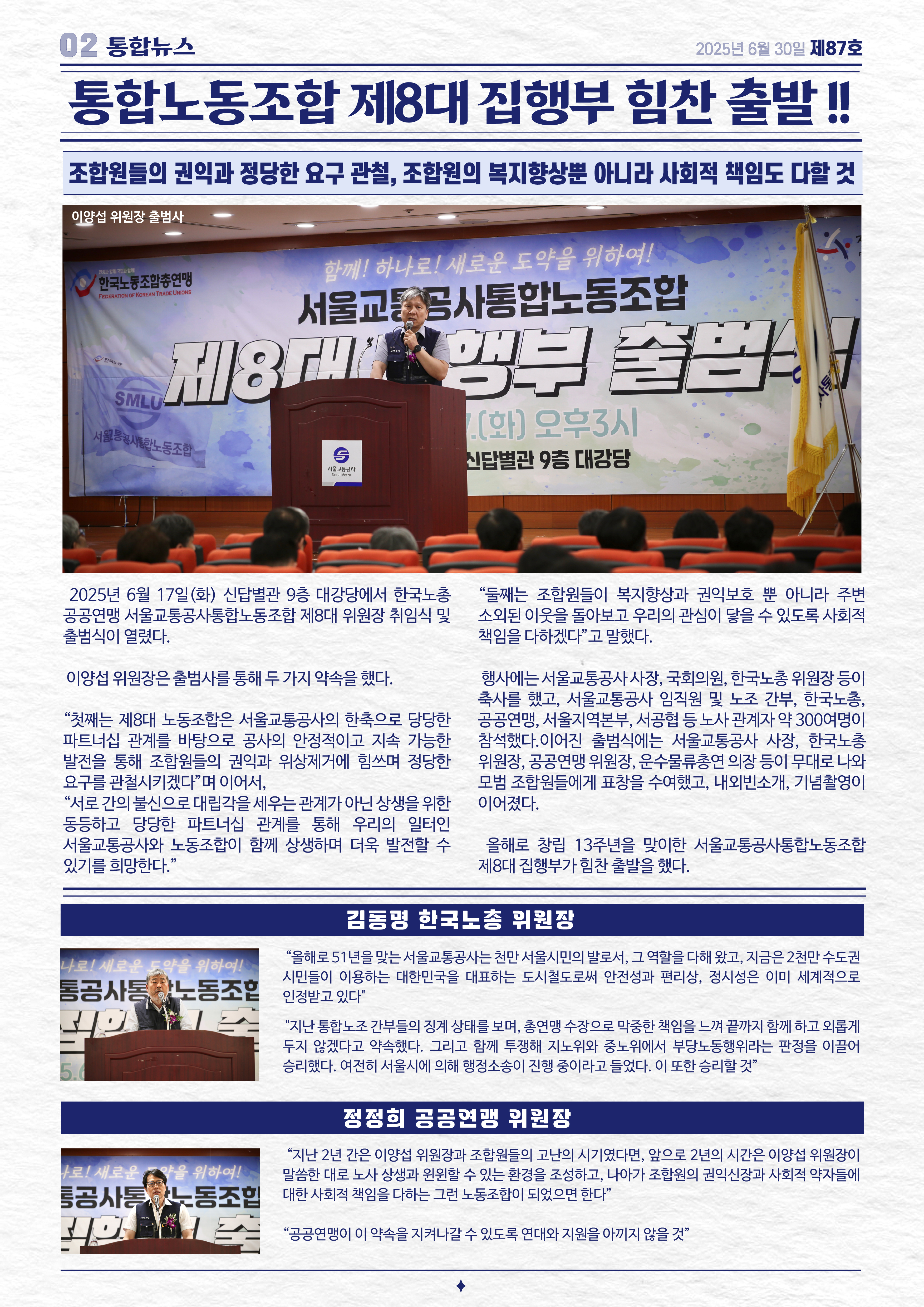 [통합뉴스 제87호] 2025년 정기대의원대회 및 출범식 개최
