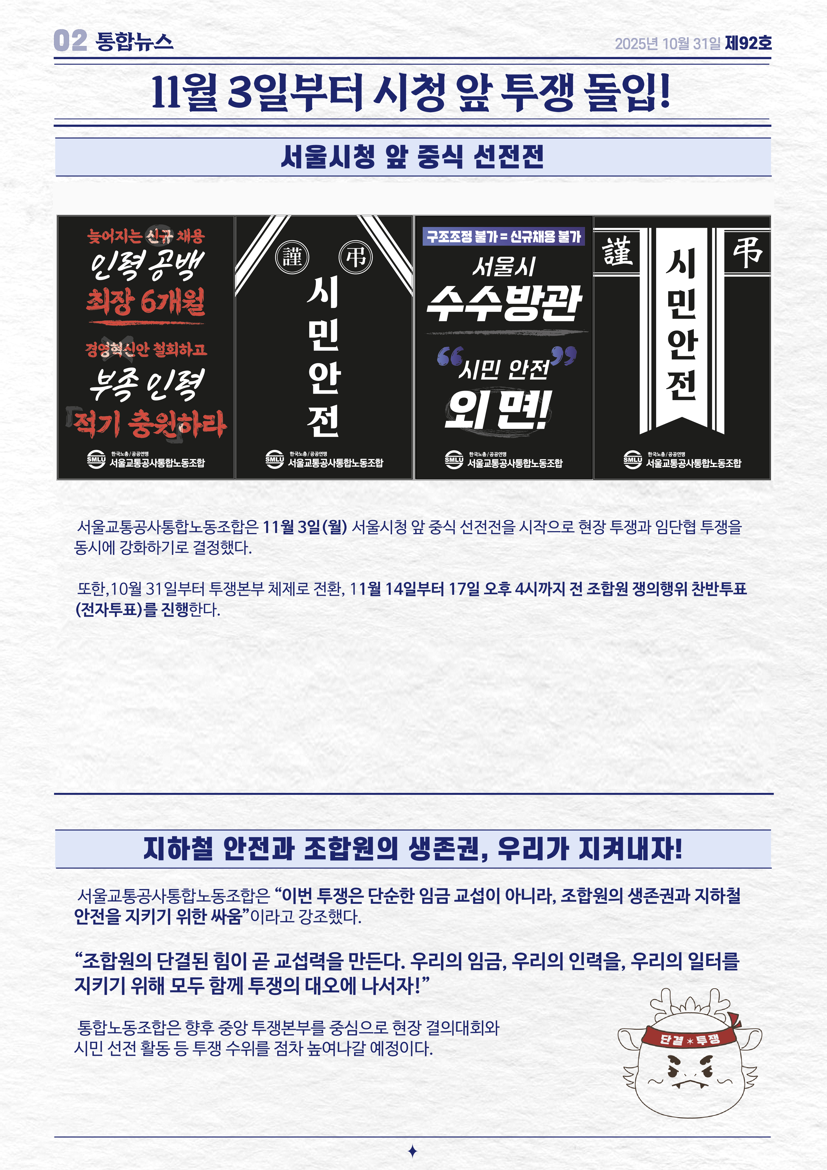 [통합뉴스 제91호] 2025년 임금교섭 결렬!