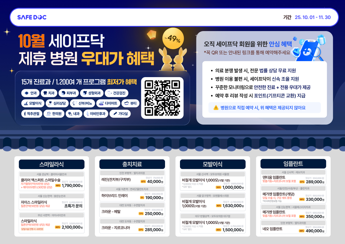전국 500여개 병의원 비급여 의료비 진료과별 최대 49% 할인혜택(15개 진료과, 1,200여개 프로그램)