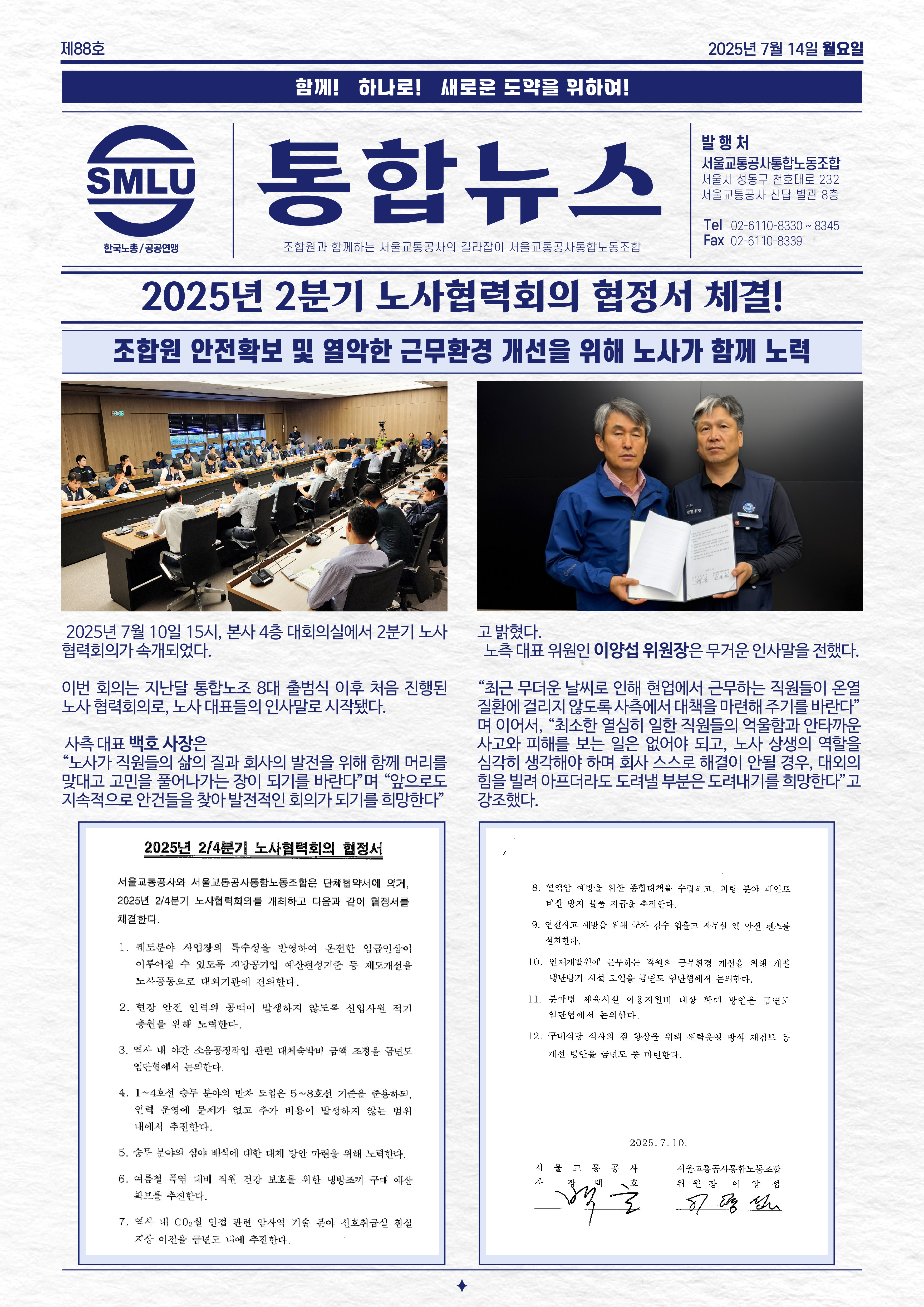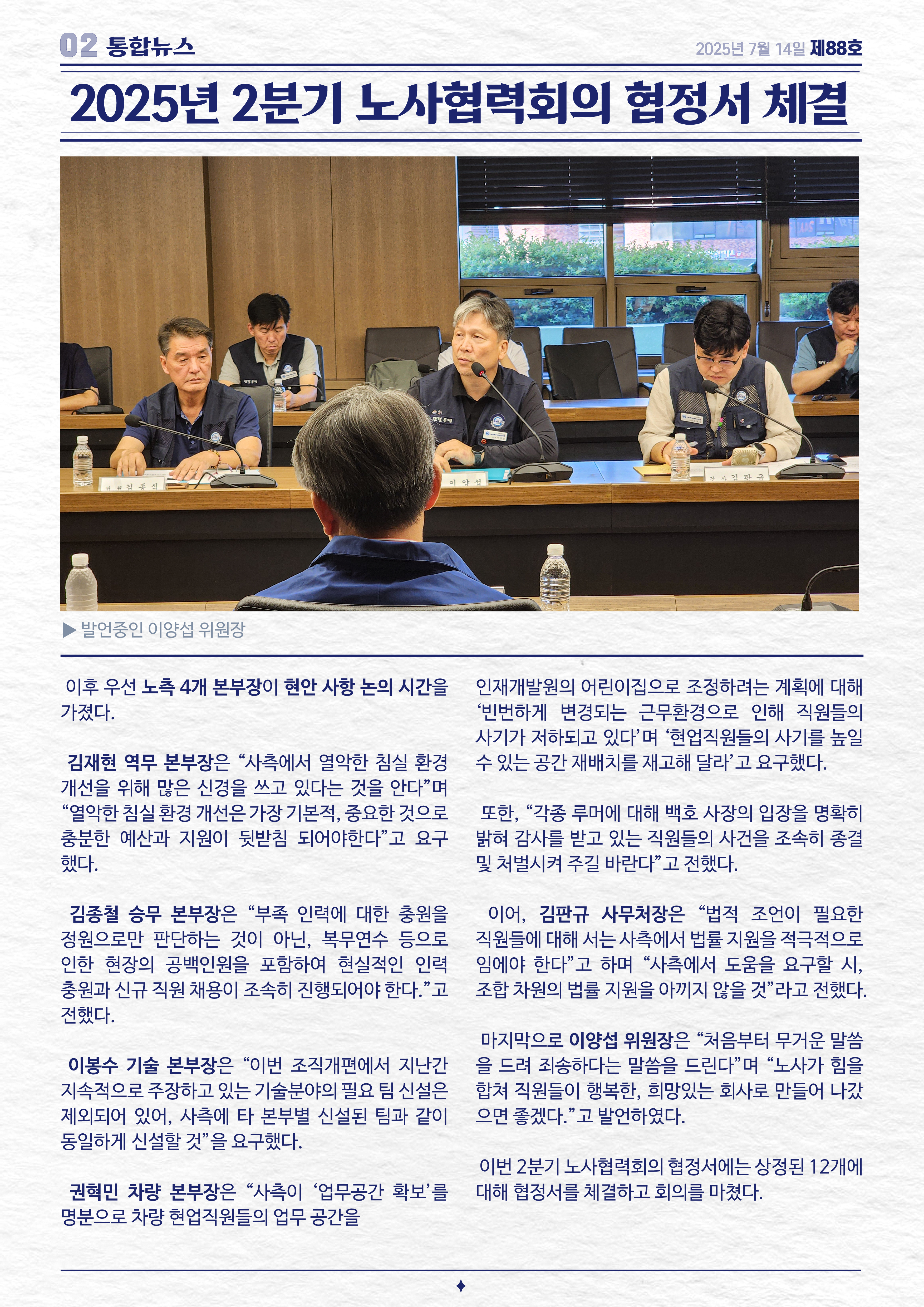 [통합뉴스 제88호] 2025년 2분기 노사협력회의 …