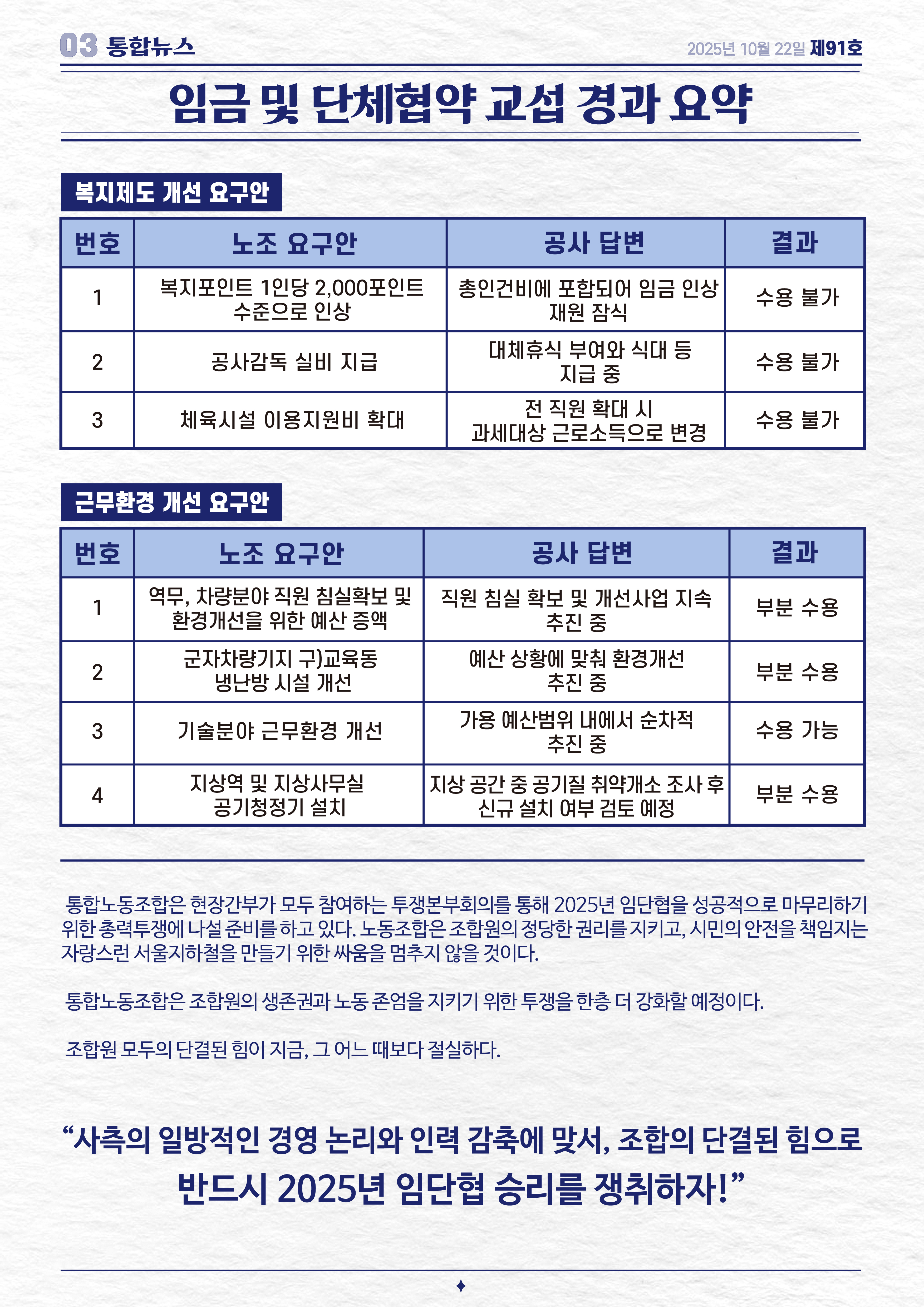 [통합뉴스 제91호] 2025년 임금교섭 결렬!