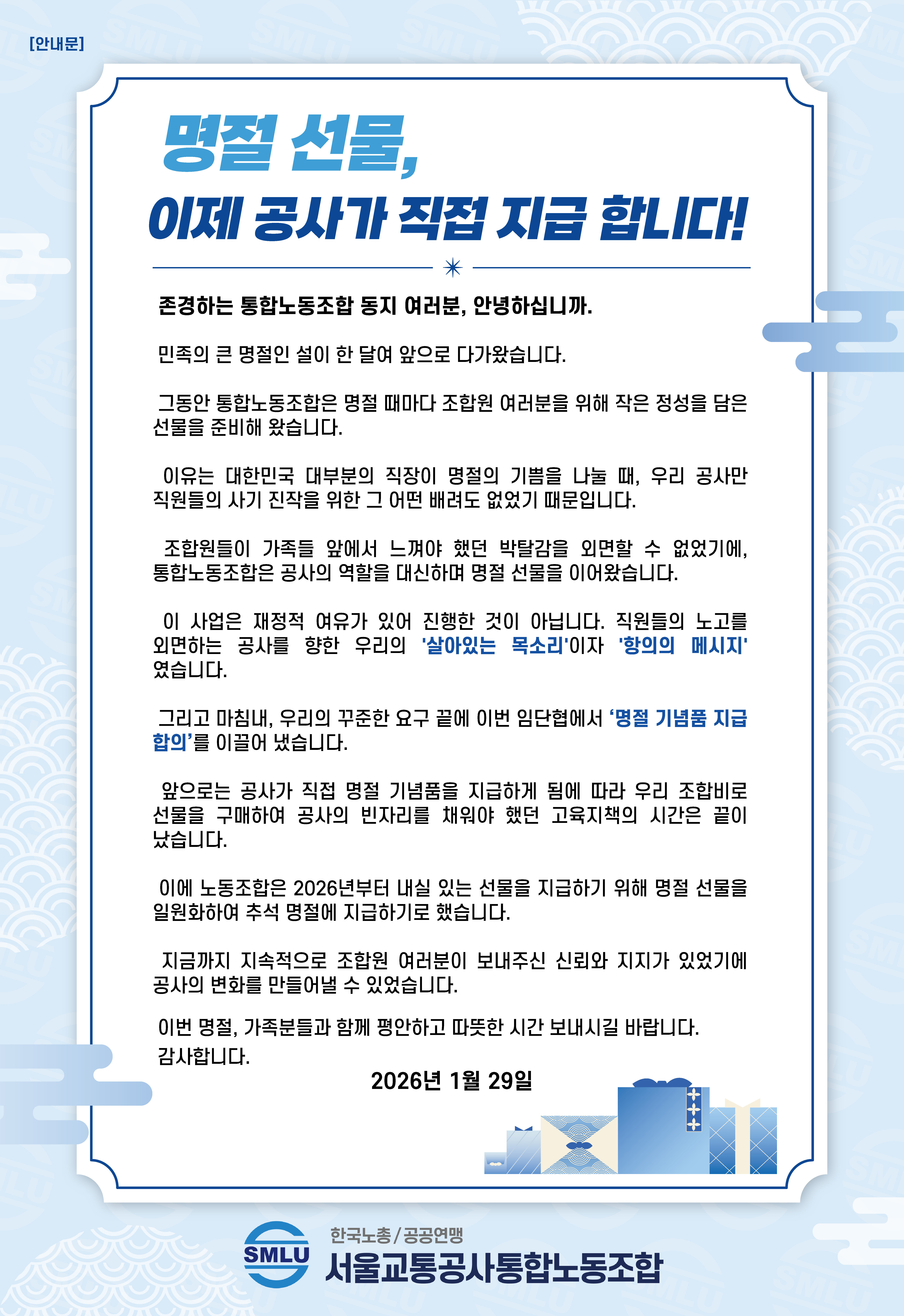 [안내문] 명절선물, 이제 공사가 직접 지급합니다