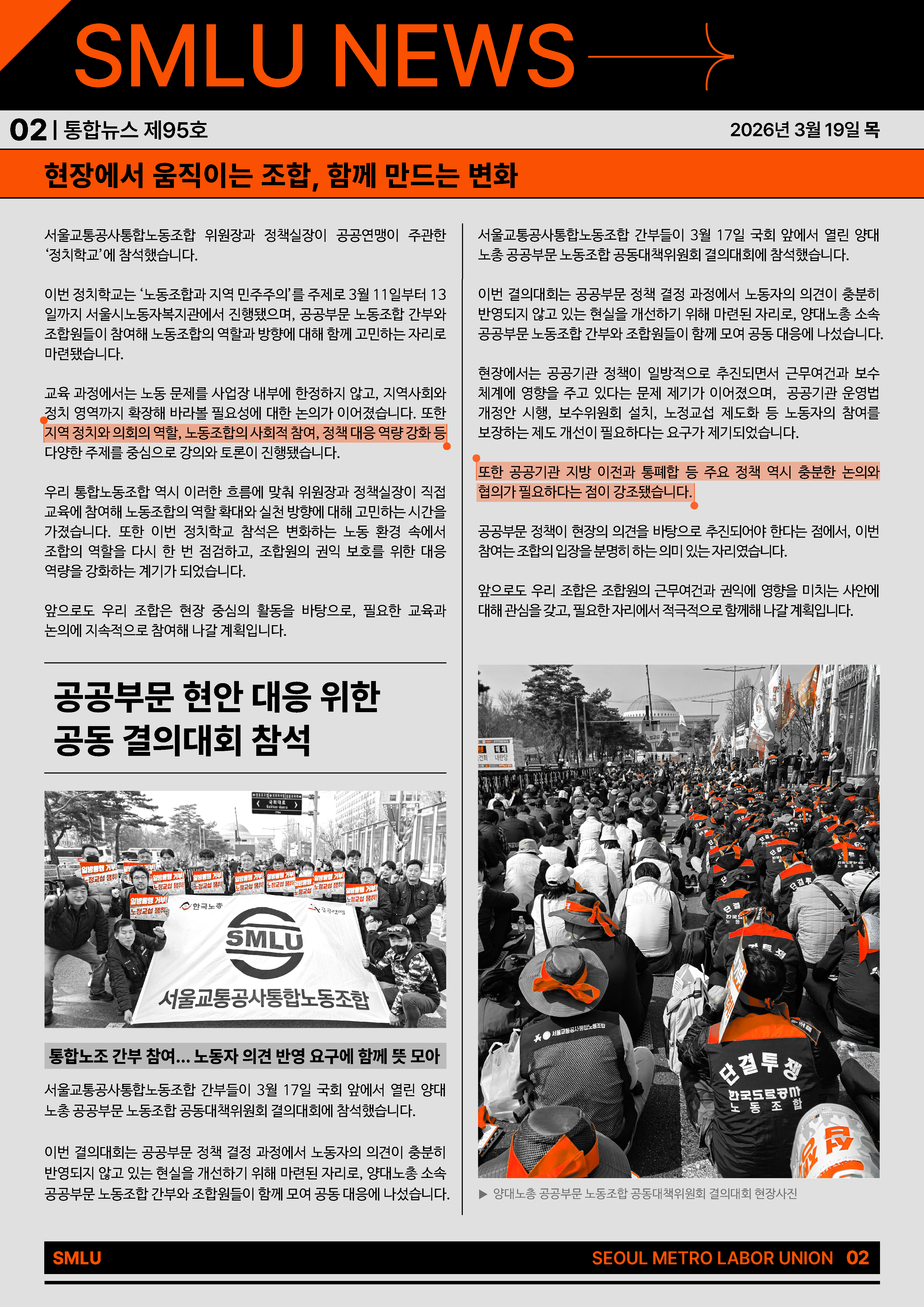 [통합뉴스 제95호] 현장에서 움직이는 조합, 함께 만드는 변화!